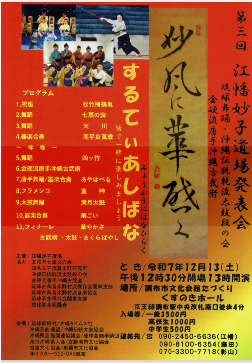 - 「琉球舞踊への誘い」第2回孤島丘奈の会に地謡・独唱で出演いたします!詳細は下記をご覧ください。
